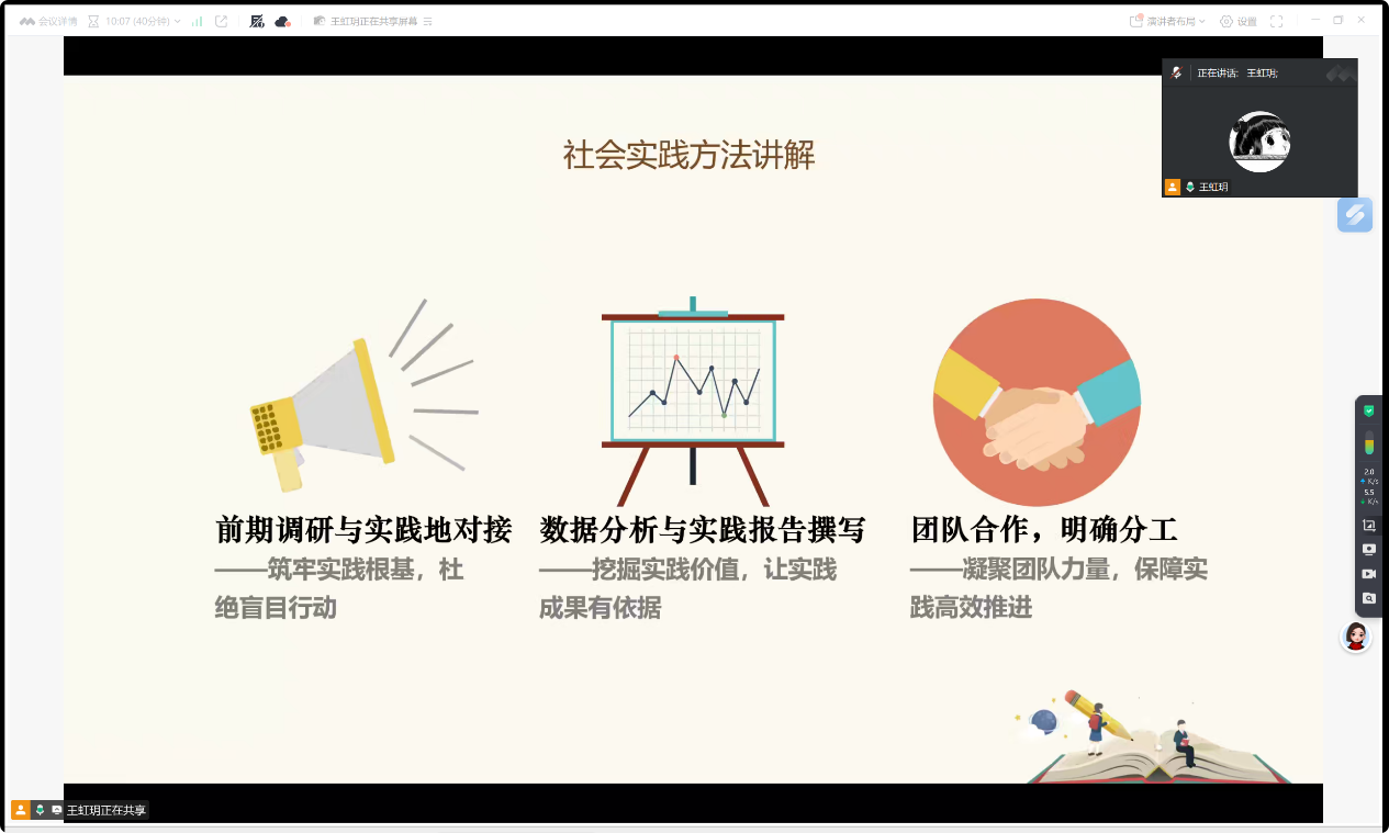 培训过程中,同学们认真聆听、积极记录,针对实践选题方向、实践过程中可能遇到的问题等内容展开线上交流,现场学习氛围浓厚。大家纷纷表示,通过此次培训,不仅理清了暑假实践的思路,更掌握了实践开展的具体方法,对即将到来的暑假实践充满期待。